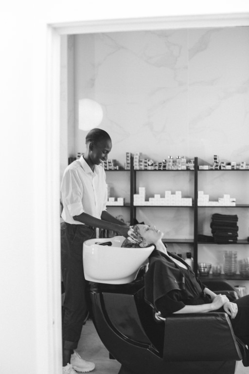 Awa es de Senegal y descubrió en Madrid su ”savoir faire” como colorista en uno de los salones más emblemáticos de la ciudad, Espacio Isaac Salido. Allí dió sus primeros pasos entre pinceles y colores. Después en su casa, como buena autodidacta, seguía practicando durante horas con una cabeza de muñeca.